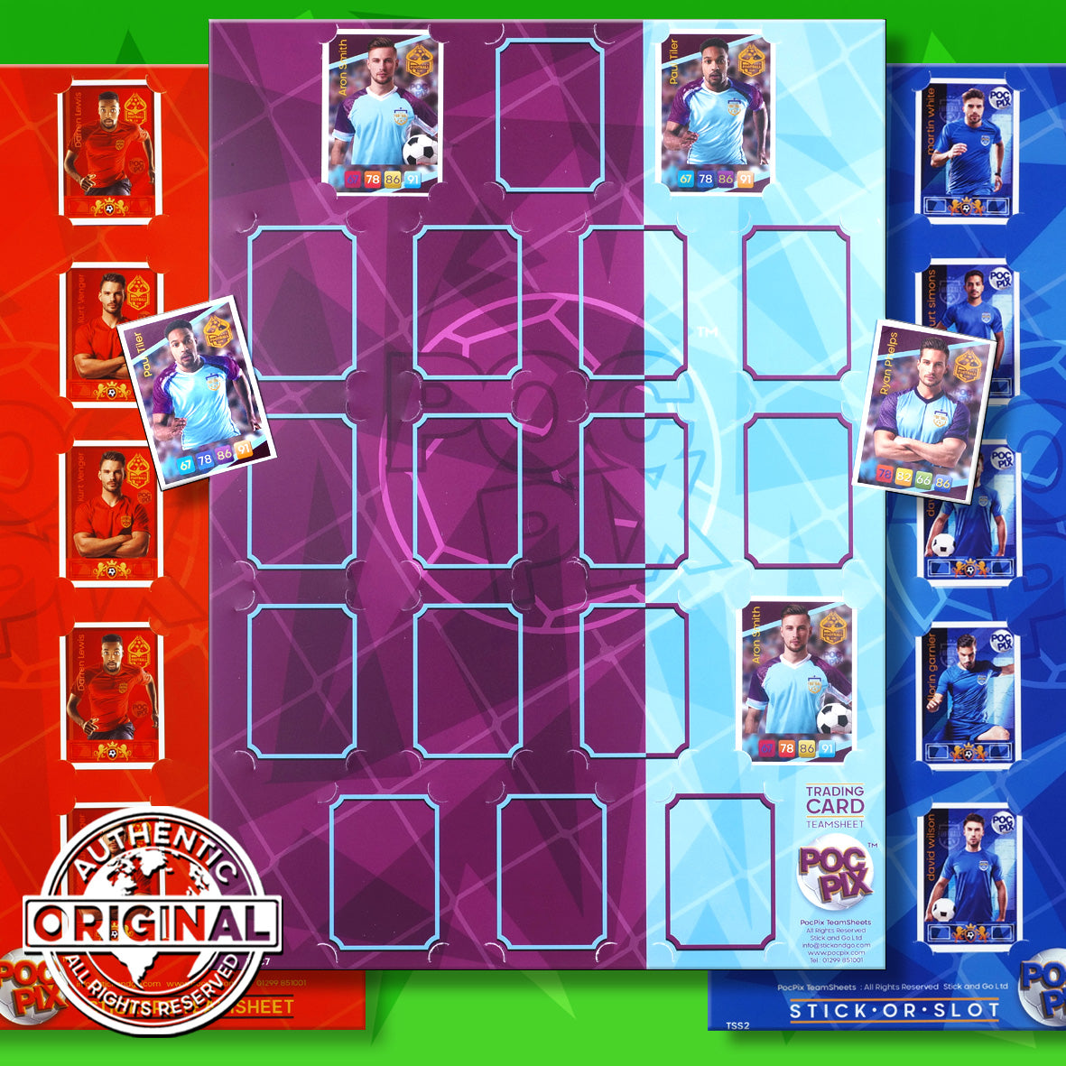 New PocPix Binder Wallets and Team Sheets are designed in individual Club colours for you to "show and store" your own collections of Trading Cards and Stickers